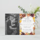 Destaque sua foto pré-casamento com este cartão de foto para salvar a data com estilo boho chic. Apresentando uma bela aquarela borgonha, floral laranja queimada e amarelo, e uma coroa de folhagem verde. Personalize-o com seus detalhes de forma fácil e rápida, basta pressionar o botão personalizar para reorganizar e formatar o estilo e a colocação do texto.