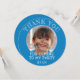 Cartão de Foto de Agradecimento para Aniversariante Azul. Cartão de foto de agradecimento de aniversário para crianças - agradeça aos convidados de aniversário por comparecerem à festa de aniversário. O texto e o nome estão em cor branca. O fundo é azul. Insira sua foto no modelo e personalize o cartão com seu nome. Você também pode alterar o texto se desejar. Ótimo para o aniversário de um menino.