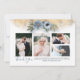 Dourado brilho e poeirento cartão com fotos de casamento de flores azuis