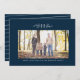 Este cartão de Natal horizontal com uma foto apresenta um monograma proeminente rodeado por ramos rústicos festivos e o ano e um espaço para um cumprimento personalizável. O verso apresenta um fundo riscado azul-marinho. A cor azul-marinho pode ser alterada clicando em "personalizar". Adesivos de endereço coordenados disponíveis na coleção Rustic Monogram de Lea Delaveris Design. Este design é uma maneira perfeita de enviar votos de Boas Festas junto com a melhor foto da sua família!