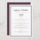 O menu de casamento simples, minimalista e elegante apresenta um design contemporâneo com uma dupla borda de quadros em roxo de gabinete sobre um fundo branco nítido. A formulação tradicional proporciona sofisticação eterno mas moderna. Personalize o design de casamento com os detalhes do menu em letras e scripts roxos. A parte traseira da placa corresponde a roxo consistente.