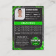 Este modelo de cartão de troca de futebol verde e preto personalizável é perfeito para mostrar o seu jogador ou equipe favorito. Com espaço para uma foto, nome, posição, estatísticas e destaques, esta placa certamente impressionará. É excelente para presentes, lembranças, ou para criar sua própria coleção personalizada.