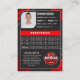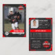 Este modelo de cartão de troca de futebol vermelho e preto personalizável é perfeito para mostrar o seu jogador ou equipe favorito. Com espaço para uma foto, nome, posição, estatísticas e destaques, esta placa certamente impressionará. É excelente para presentes, lembranças, ou para criar sua própria coleção personalizada.