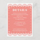 Use este belo cartão de detalhes do estilo picado de papel para adicionar informações adicionais aos seus convites de casamento. A parte de trás apresenta um design floral. Perfeito para um casamento mexicano tradicional ou moderno.