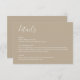 Esta carta de detalhes do casamento do boho beige moderno apresenta uma design minimalista com uma cor bege-suja e bege-boho e uma tipografia moderna e limpa. Está disponível uma suite de casamento coordenada.