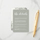 Este cartão detalhado gravatas nos convites para o casamento com detalhes simples que fazem uma diferença espantosa. Este verde ajustado com qualquer tema, mas vai para o excelente bloqueando outros verdes ou com sotaques verdes para a suíte perfeita de casamento.