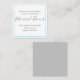 Pequenos cartões de cercado minimalistas para janto de ensaio de casamento. Quadrados, os cartões de tipo comercial são brancos com texto de cinza e devem ser incluídos nos convites de casamento. Selecione os convidados que serão convidados para esta pré-festa de casamento especial e inclua um cartão com informações de janto de ensaio em seu convite. Ou usar para direcionar convidados para um site de casamento e RSVP online. As placas têm uma borda azul-céu que é fácil de colorir para corresponder ao seu tema. O reverso é uma cinza de luz sólida.