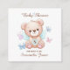 Crie uma placa de gabinete de chá de fraldas personalizada como parte de seus convites de chá de fraldas. A frente do cartão tem "Chá de fraldas" com o nome da futura mãe. A parte de trás tem uma mensagem personalizada que você pode mudar. Nota: a mensagem atual incentiva os hóspedes a trazerem um livro em vez de um cartão tradicional. Apresenta Bears & Butterflies design. Use a modelo para personalizar.