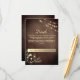 Cartão de noivado elegante, moderno e rústico de madeira com website, rendas florais douradas e luzes de cordas. Escolha ideal para o outono ou casamentos no inverno.