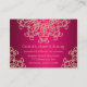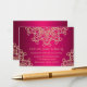 Uma bela joia rosa quente, fúcsia rosa-quente e casamento dourado ou qualquer cartão de recinto especial com um sari ornamental inspirado pela Índia exótico, como um padrão com um lótus e um design de rajada solar floral. Este elegante e belo cartão de cervejaria moderno e luxo ao estilo indiano é perfeito para qualquer ocasião formal com noites árabes indonésias do leste asiático ou tema aladino. Design © Chrissy H. Studios, LLC. Todos os Direitos Reservados.