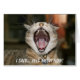 Um gatinho faminto exige ser alimentado agora. Cartão de gato para qualquer ocasião. dentro vazio.