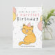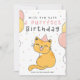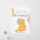 Envie votos de aniversário encantadores com este charmoso cartão com um adorável gato laranja vestindo um chapéu de festa. A animada mensagem "Desejo que tenhas um aniversário perfeito", balões coloridos, e design de confetti brincalhão tornam-na ideal para amantes de gatos. Personalize-o para criar uma saudação de aniversário única e animadora!