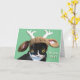 Cartões de Cartões de natal de Natal engraçados com um gato preto vestindo galhadas de renas