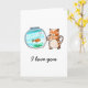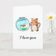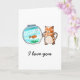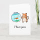 Cartão de gato e peixe dourado apaixonados