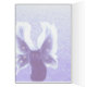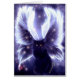 Um gato fada preto com asas roxas brilhantes contra um fundo estrelado. Cartão de gato fada de inocência de Michaeline McDonald. Direitos autorais do trabalho de arte © Michaeline McDonald.