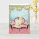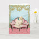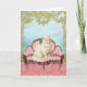 Um delicioso gato vitoriano branco senta-se num sofá vitoriano rosa. Um cartão perfeito para o amante do gato ou dono de um animal de estimação para um aniversário, um obrigado para você ou qualquer ocasião. Um cartão para ela.