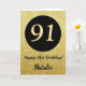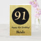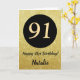 Cartão de Glitter Preto e Dourado de 91º Aniversár