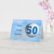 Um cartão de diversão excelente para um golfista ou uma ocasião de golfe. Uma bola de golfe voando pelo ar com 50 escritos.