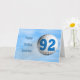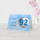 Um cartão de diversão excelente para um golfista ou uma ocasião de golfe. Uma bola de golfe voando pelo ar com 92 escritos.