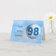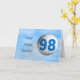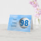 Um cartão de diversão excelente para um golfista ou uma ocasião de golfe. Uma bola de golfe voando pelo ar com 98 escritos.