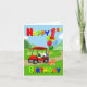 Ampliando a cena do aniversário, um carrinho de golfe vermelho brilhante traz entusiasmo e alegria! À frente, senta-se um bolo festivo com tema de golfe, enquanto as costas estão empilhadas com presentes coloridos e balões saltados com um balão gigante número 1. Com um texto de cor primária ousado, este cartão é perfeito para celebrar o dia especial de um menino.