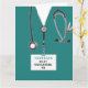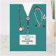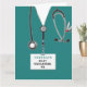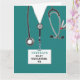Cartão de formatura de uma escola de enfermagem criativa com esfregões hospitalares, um estetoscópio e uma engraçada faca suíça. Para personalizar o texto de edição para adicionar o nome da enfermeira.