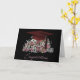 Cartão de saudação de formatura bonito para meninas, com uma foto de um buquê de rosas cor-de-rosa, em um fundo preto, com um boné marrom de papelão, em cima. Personalize o texto personalizado para ler o que você deseja.