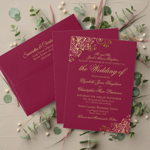 Burgundy Maroon & Gold Lace Elegant Wedding SuiteCriado por Cat Ritchie