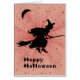 Cartão de Halloween com Bruxa numa Broom Humorosa
