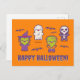 Cartão de Halloween com monstros kawaii fofos