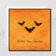 Design de Halloween com morcegos assustadores em fundo laranja texturado. Conceito mínimo.