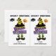 Este cartão-postal bonitinho de Halloween foi projetado para ser facilmente cortado em duas cartas. A imagem é de um sinal de "Feliz Dia das Bruxas" com um chapéu de bruxa listrado de ouro e preto e pernas de bruxa verdes estocadas com botas pretas. Uma pequena aranha preta pendura ao lado da imagem. Perfeito para os alunos do ensino fundamental darem aos seus amigos na festa de Halloween da escola, e também econômico! E os professores também podem personalizá-lo para dar aos alunos também!