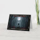 Este cartão de Halloween apresenta uma mistura única de escuridão e doçura. A imagem central retrata um coala sentado em um galho de árvore no meio de uma floresta escura e enevoada. A lua cheia brilha intensamente ao fundo, lançando um brilho sinistro sobre a cena. A floresta é sombria e misteriosa, com árvores altas e nuas criando uma atmosfera assustadora. Apesar do cenário sombrio, a presença do coala adiciona um toque de calor e charme, tornando o cartão ao mesmo tempo encantador e apropriado para o Halloween.
