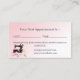 Uma na moda Bridal Alterações de vestido Cartão de compromisso decorado com um manequim de alfaiate e uma máquina de costura, com as luzes de cordas cor-de-rosa sobre um fundo de gradiente rosa pálido com espaço para escrever na data e hora do próximo compromisso do cliente. Ideal para pequenas empresas, como costureira, empresa de costureiras, serviços de alteração e muitas outras. Todo o texto pode ser personalizado e personalizado para atender às necessidades de sua empresa. O modelo de lembrete está na parte traseira da placa, juntamente com os detalhes da empresa e as informações de contato.