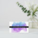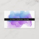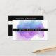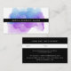 Cartões de marcação a aquarela para o seu salão, spa ou serviços de beleza apresentam o seu nome ou nome de empresa numa banda fina de preto, em camadas sobre uma ilustração brilhante e colorida de cor azul violeta e indigo. Adicione sua política de cancelamento, cabeçalho personalizado e informações de contato ao fundo em branco em preto nítido. Inclui espaço para escrever na data e hora do próximo compromisso do cliente.
