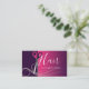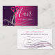 Cartões de visitas roxos/cor-de-rosa modernos da nomeação. As características de design um pares de tesouras e de um cabelo elegante rodam. O fundo é roxo escuro e um rosa vibrante. Personalize o texto do modelo com sua informação do negócio para fazer-lhe seu próprio cartão telefónico original do negócio. Trabalhos de arte pela arte & pelo design de ChanDraws. Sinta livre contactar-me se você precisa a ajuda com a personalização ou se você gostaria de combinar produtos. kepplemorgan@shaw.ca