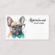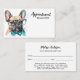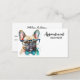 Mostre seu negócio de cuidado com cães/animais de estimação com esses elegantes e bonitos filhotes de cachorrinhos franceses, design, com cartões de visitas de lembrete e acessórios correspondentes. Personalize com o nome do proprietário da empresa, o título/nome da empresa e todos os detalhes de contato. Perfeito para caminhantes de cães, aliciamento de cães, babás de animais de companhia e todos os negócios relacionados com cuidados para animais de companhia". Cartão de visita é de dois lados. Esta coleção de negócios de buldocos franceses será a favorita entre amantes de frenchidos e amantes de cães. COPYRIGHT © 2023 Judy Burrows, Black Dog Art - Todos Os Direitos Reservados. Cachorro Engraçado Puppy Pet Francês Bulldog Cartão