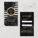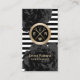 Cartão de visita de Compromisso do Salão Floral Preto em Stripes Modernas.