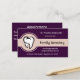 Imagem de um conjunto de dentes brancos dentro um círculo cor de laranja amarelo pálido com uma faixa central grande. O verso do cartão tem linhas para compromissos, data e hora. Excelente para qualquer escritório dentário.