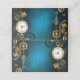 Turquesa, texturizada, fundo steampunk com latão e engrenagens douradas, chave prateada e relógio. Estilo Steampunk.