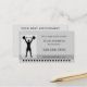 Um cartão de visita moderno com uma silhueta de elevador de peso sobre um fundo de design de cinza. Perfeito para especialista em malhações ou treinador pessoal.