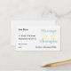 Um design bonitinho e inteligente usando impressões de mão e as palavras "Terapista de Massagem" em amarelo e verde macio. É o cartão de visita perfeito para a sua prática de massagem, e oferecemos cartões de saudação, cartazes, botões e muito mais com o mesmo design. Muitas opções de papel para escolher também.
