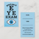Oftalmologista, optometristas e ópticos - lembre seus pacientes do cuidado do olho quando é hora para seu exame de olho anual com este modelo do cartão da nomeação do divertimento. O cartão mostra um design da carta de olho do snellen que diga: Seu exame de olho seguinte. Personalize com seus nome do escritório, telefone do endereço e Web site.