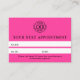 Keep your clients organized and on time with this modern, custom appointment card. Featuring a Simple Bight Pink design, it's perfect for businesses looking to maintain a professional, minimalist look. Personalize it with your company logo, contact details, and appointment info to create a branded card that reflects your business. Ideal for small businesses and corporate branding.