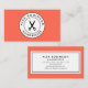 Um cartão de visita moderno retro que caracteriza um logotipo preto e branco circular na parte dianteira em um fundo azul. A cor do fundo pode ser mudada a qualquer coisa que combina seu negócio. Isto seria perfeito para um cabeleireiro, o cabeleireiro ou um barbeiro como o logotipo caracteriza um par de tesouras. Igualmente seriria uma costureira, um alfaiate ou um qualquer um mais que trabalhassem com tesouras.