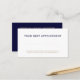 Certifique-se de que os seus clientes nunca percam uma reunião com os nossos cartões de lembrete de compromissos profissionais simples. Com um esquema de cores azul e ouro para marinhos eternos, este cartão personalizável é perfeito para advogados, escritórios de advocacia, planejadores imobiliários, consultores financeiros e qualquer empresa de serviços profissionais. A design minimalista proporciona amplo espaço para detalhes essenciais, enquanto a tipografia clássica expele sofisticação e confiança. Quer você esteja em direito, finanças ou outros serviços profissionais, este cartão versátil pode ser adaptado à sua identidade única de marca. Saia com um design que reflita seu compromisso com a excelência e o serviço personalizado.