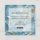 Cartões de compromisso de cliente com na moda quadrado em papel espesso apresentam um design de mármore azul e dourado na frente e atrás com as próximas informações de compromisso do cliente, suas informações de contato e ícones de mídia social na parte traseira. Altere o papel, o tamanho e coloque os cantos quadrados ou redondos nos cantos para criar suas próprias placas exclusivas.