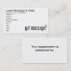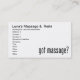 Foi movido depois daquela propaganda muito popular, temos um design super fofo "Get Massage?" em toneladas de produtos para que você possa usá-lo em seus cartões de visitas de massagem, cartas de agradecimento, ou presentes de cliente. Disponível em texto preto ou branco.