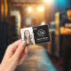 Crachá de ID corporativo moderno, mínimo, preto, que pode ser facilmente personalizado com foto, nome, informações, código QR. Crie o número de funcionários de sua empresa necessário.