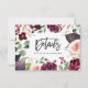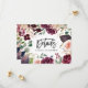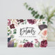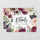 Cartão de detalhes de casamento floral cor de rosa, burgundy e fig. Floral, folhagem e fruta pintada à mão, de cor aquosa. Parte de uma suíte de casamento. A cor de fundo pode ser personalizada.
